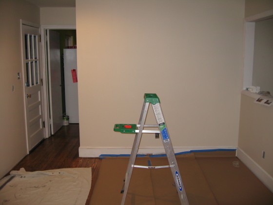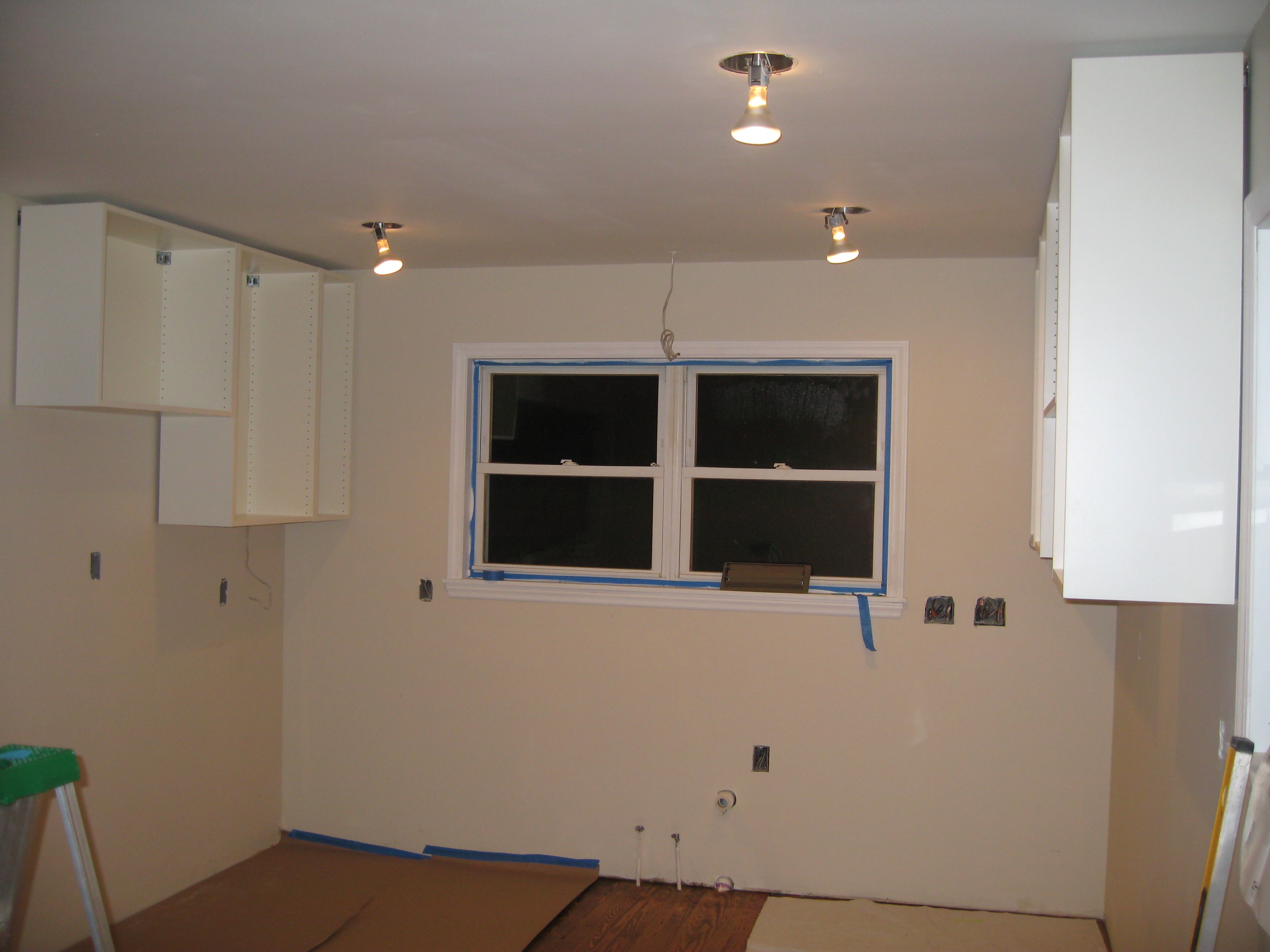 The glowing dots in the living room are Dante’s eyes, because she’s decided cabinets are awesome and she’s going to hang out near them as much as possible – we had to eject her from the upper cabinets so we could install them, and she was decidedly not helpful during the base cabinet assembly, with that typical cat ability to always be sitting on the next part I needed.
