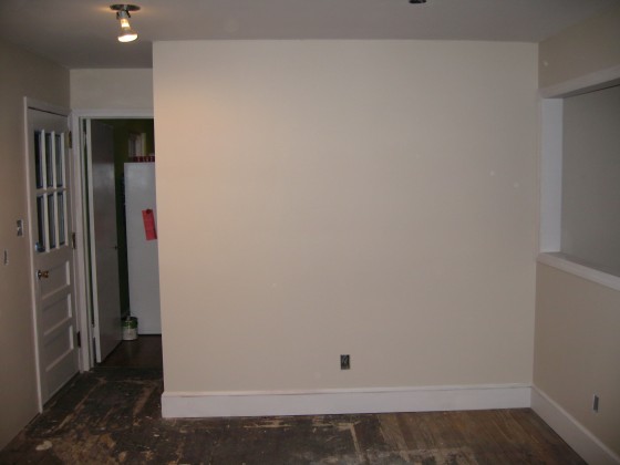 Today I got the second coat of paint on the walls, and though it’s not quite dry yet, it looks miles better than yesterday – nice solid color instead of that first-coat patchiness. I feel like everything’s suddenly moving very slowly, since I’m the only one doing work on the kitchen at the moment – last week it was a big surprise every day what the contractor had achieved, and now I’m like “painted more, see the tiny difference?” But it’ll get more impressive again soon, I hope, since the floor guys come tomorrow and then it’s time for the actual cabinet installation.