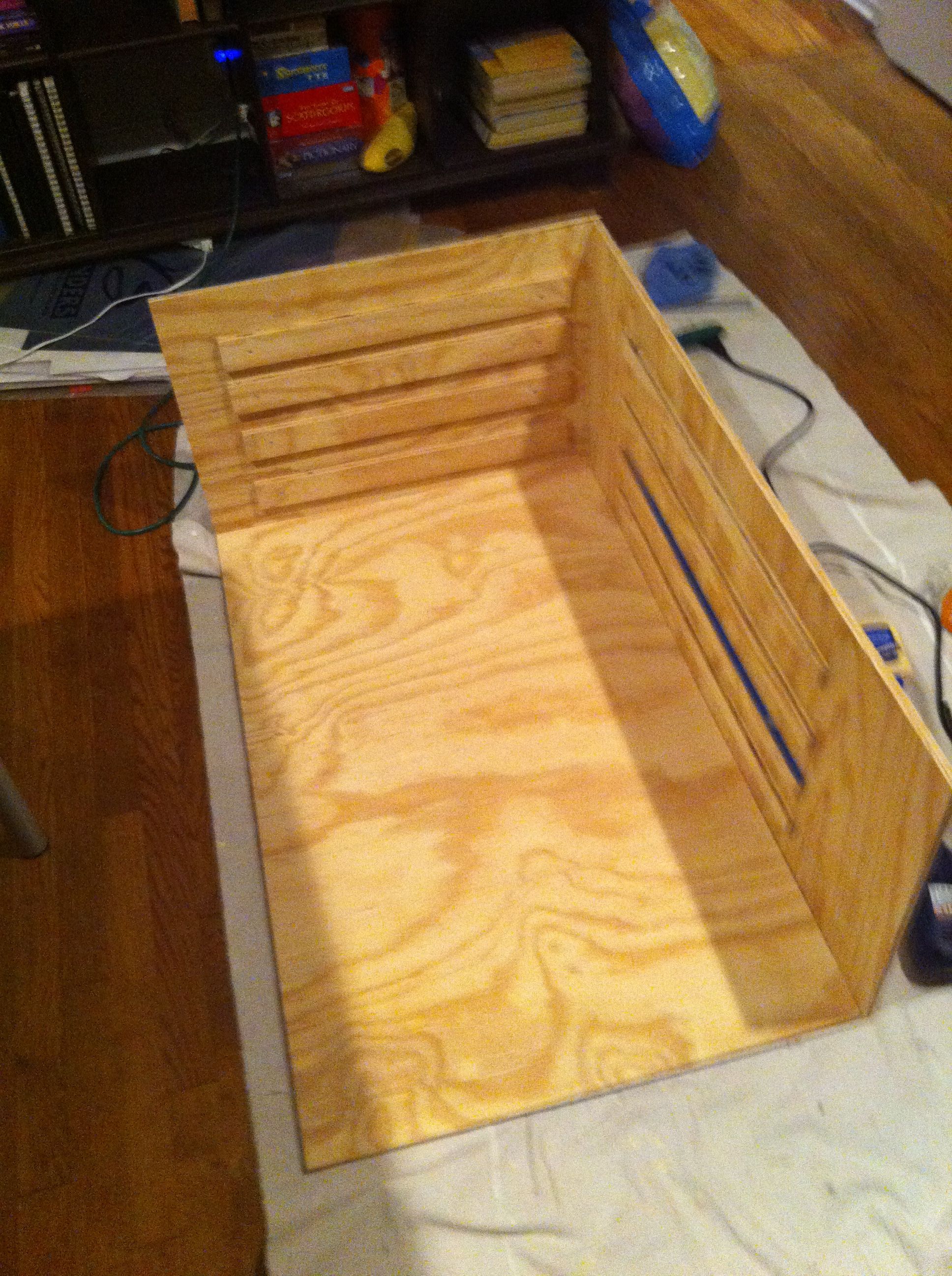 Then I screwed and glued the sides and back to the bottom. And right after taking this picture: