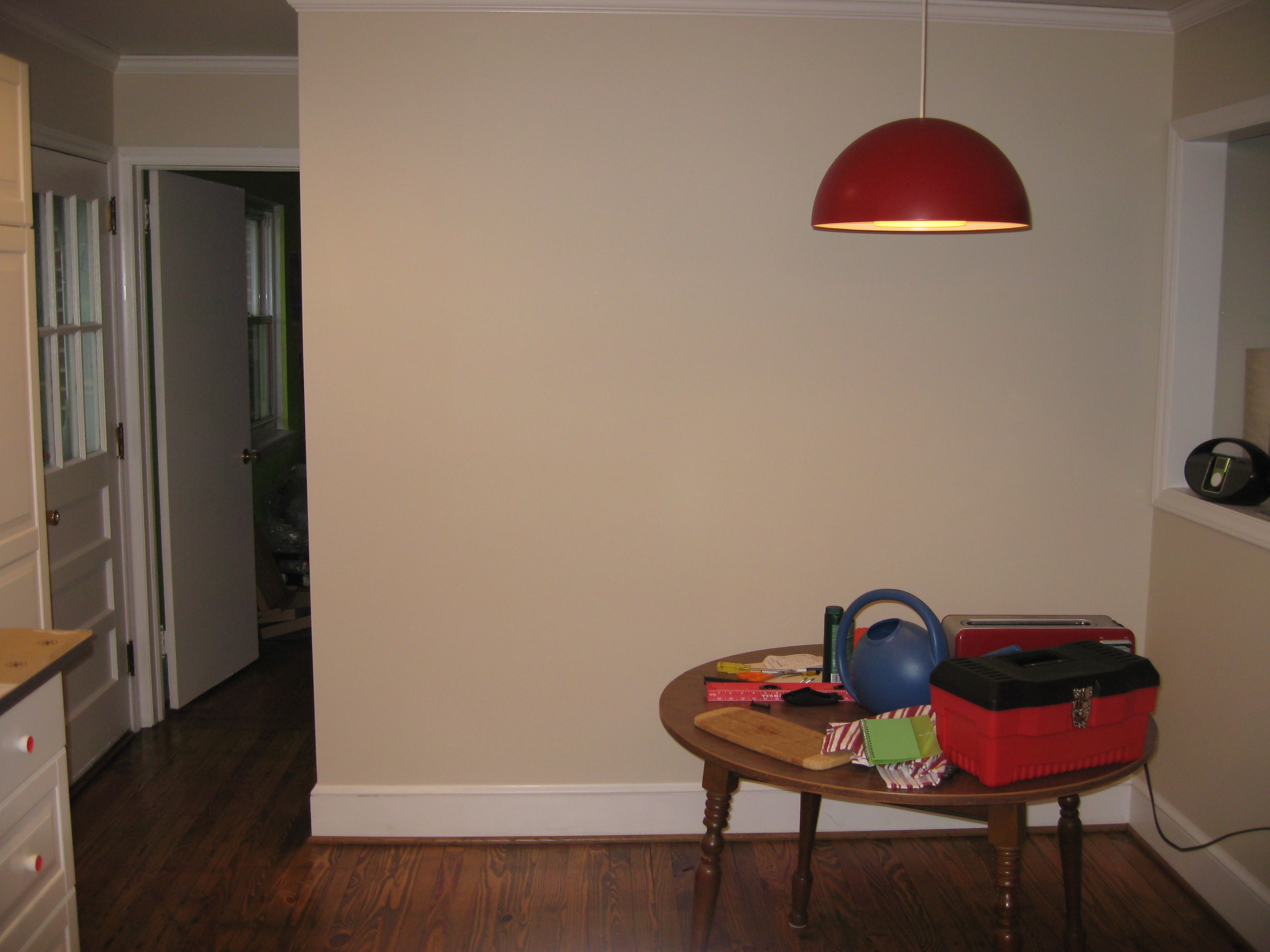 Anyway, I finally found a light for over the sink that I don’t hate. It’s not quite perfect, but I like it well enough to live with it indefinitely. The hiccup in this was that as I went to install it, I realized that my electrician had just left me wires in the ceiling, not an actual ceiling box, y’know, anchored in the attic, made of metal, capable of holding up a light fixture. So I called my contractor, and he sent the electrician back to put the box in. It took maybe 15 minutes, but electricity is one of those things I leave to the experts. With the box in, installation of the fixture was pretty straightforward, and now I have light over my sink.